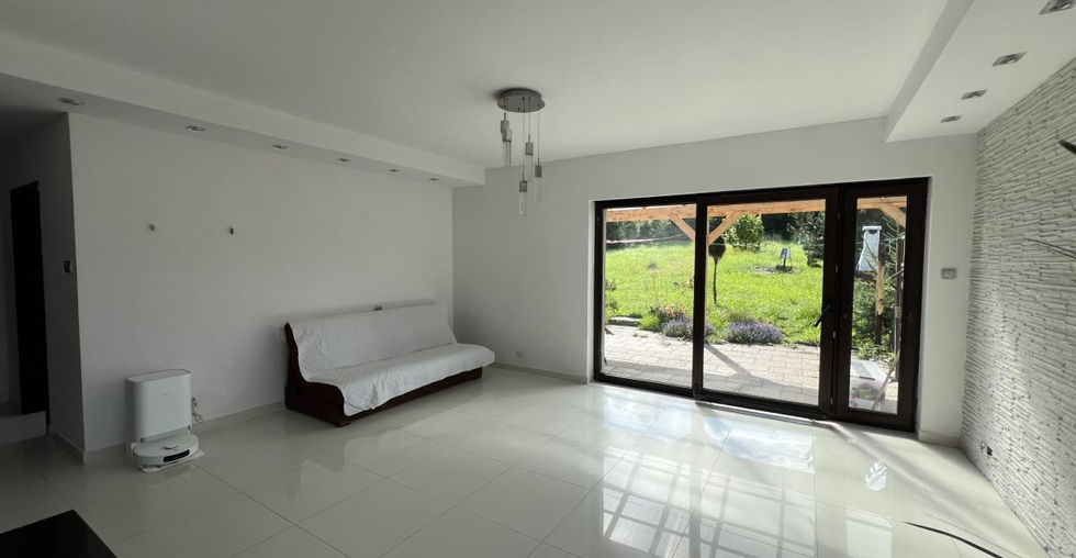 Nieruchomość posadowiona na płaskiej działce o powierzchni około 3200 m2, zagospodarowanej i częściowo ogrodzonej. Dom parterowy z poddaszem użytkowym, wybudowany w 2012 roku z betonu komórkowego (H+H), elewacja: styropian 10 cm + siatka + tynk akrylowy. Łączna powierzchnia całkowita to ok 140 m2 w tym na parterze: wiatrołap, jasny duży salon z otwartą kuchnią i spiżarką, wyjście na taras i ogród, sypialnia oraz łazienka. W budynku garaż jednostanowiskowy. Poddasze: korytarz, przestronna łazienka z wanną i 3 sypialnie. Dach kryty dachówką ceramiczną z rynnami. Okna PCV trójszybowe. Media: woda ze studni głębinowej (34m), kanalizacja sieciowa, prąd. Ogrzewanie elektryczne, podłogowe na parterze oraz w górnej łazience + kominek z płaszczem wodnym.